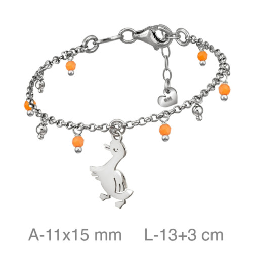 PULSERA PLATA PATO PIEDRA NARANJA
