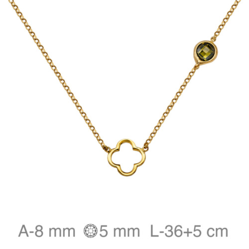 GARGANTILLA BAÑO ORO TREBOL PIEDRA VERDE