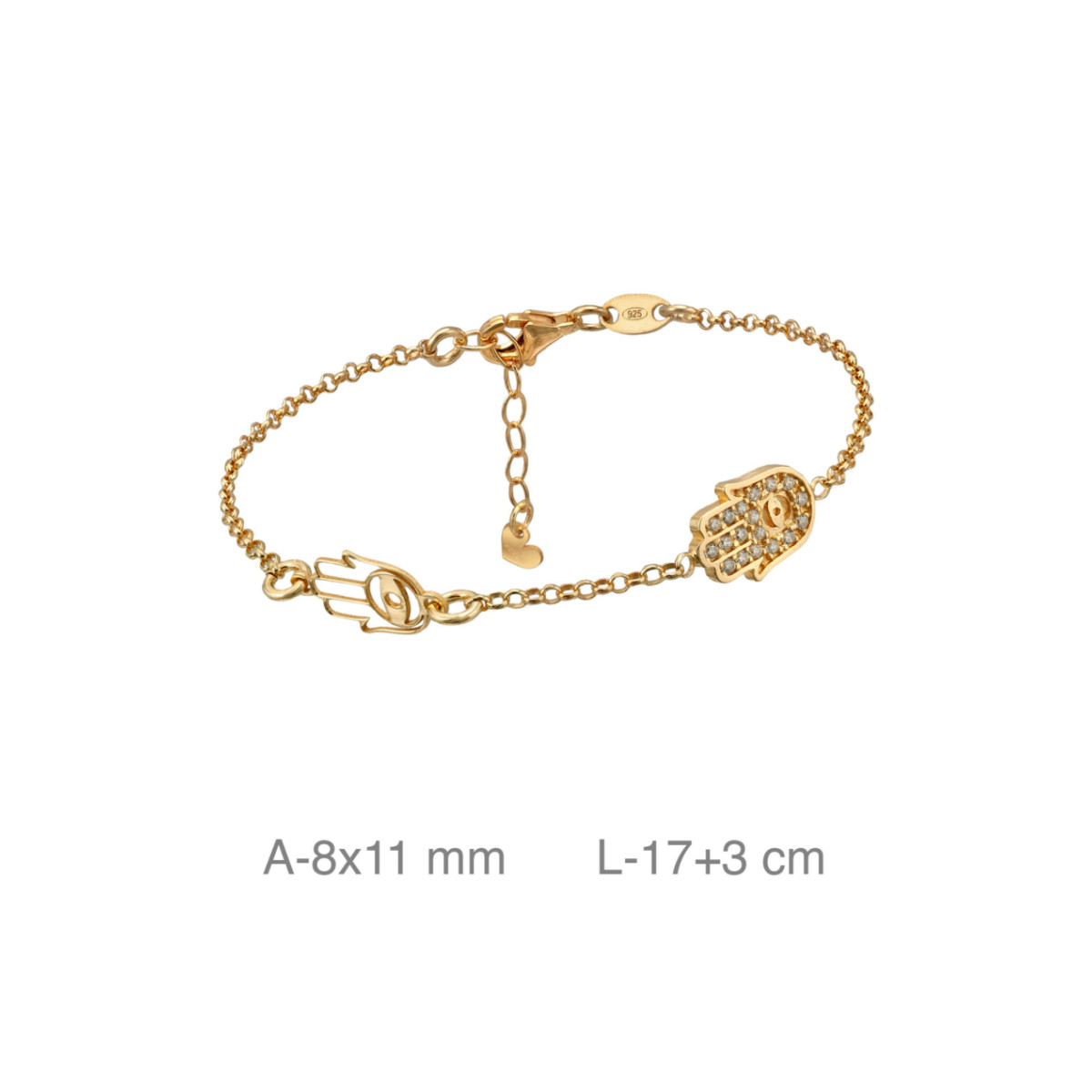 PULSERA BAÑO ORO MANO FATIMA CIRCONITAS